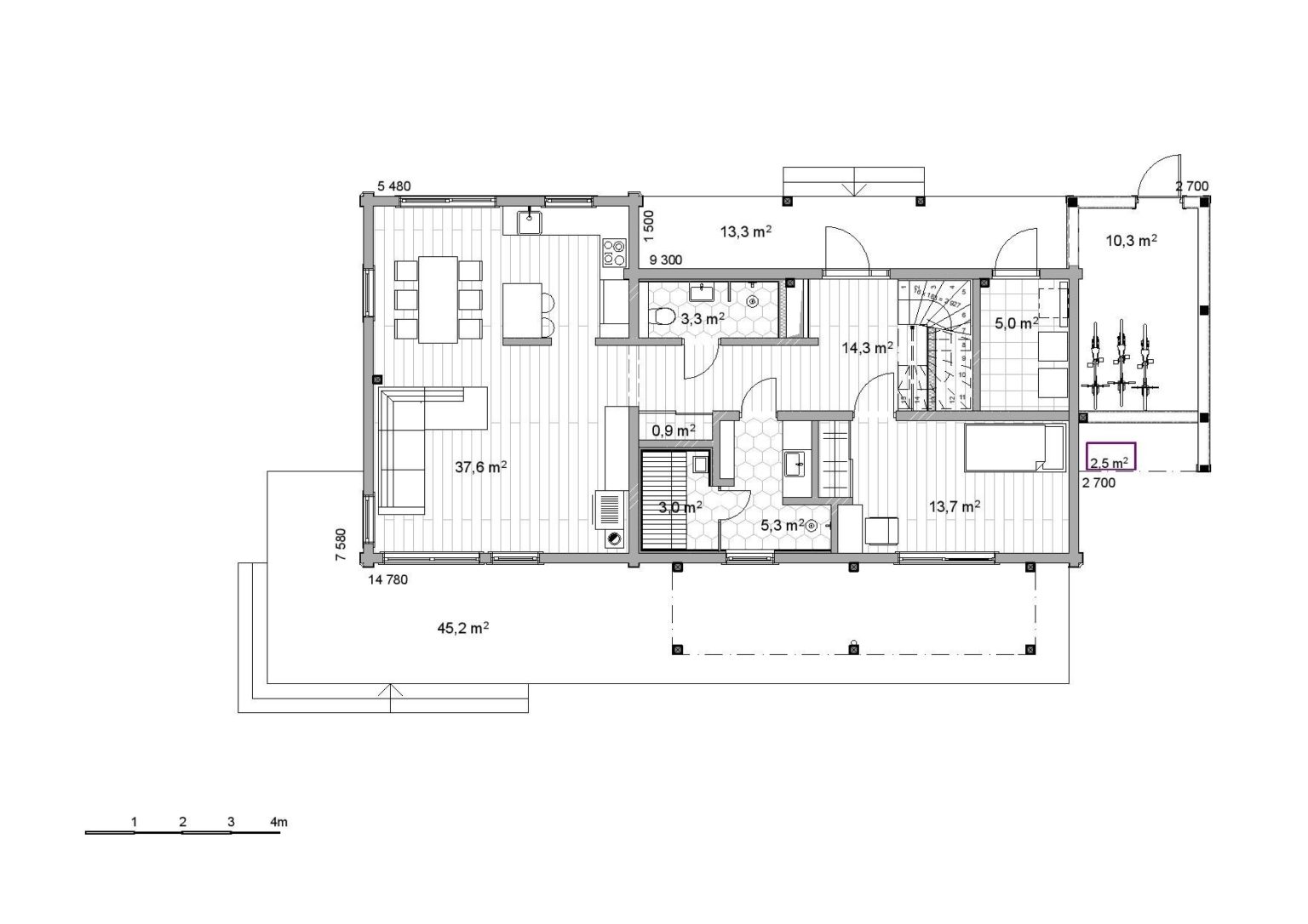 135.4 m2Terrasses et/ou balcons